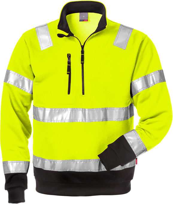 De 100134 HI-VIS Zipsweater van Fristads , is gemaakt van 75% polyester/ 25% katoen, 306 gr/m².