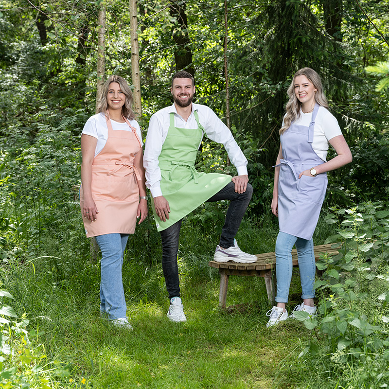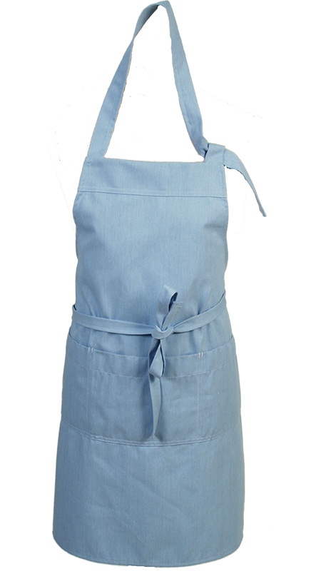 Bewust denim halterschort 4304. een duurzaam schort met professionele uitstraling, handige zakken, verstelbare halsband in diverse leuke kleuren