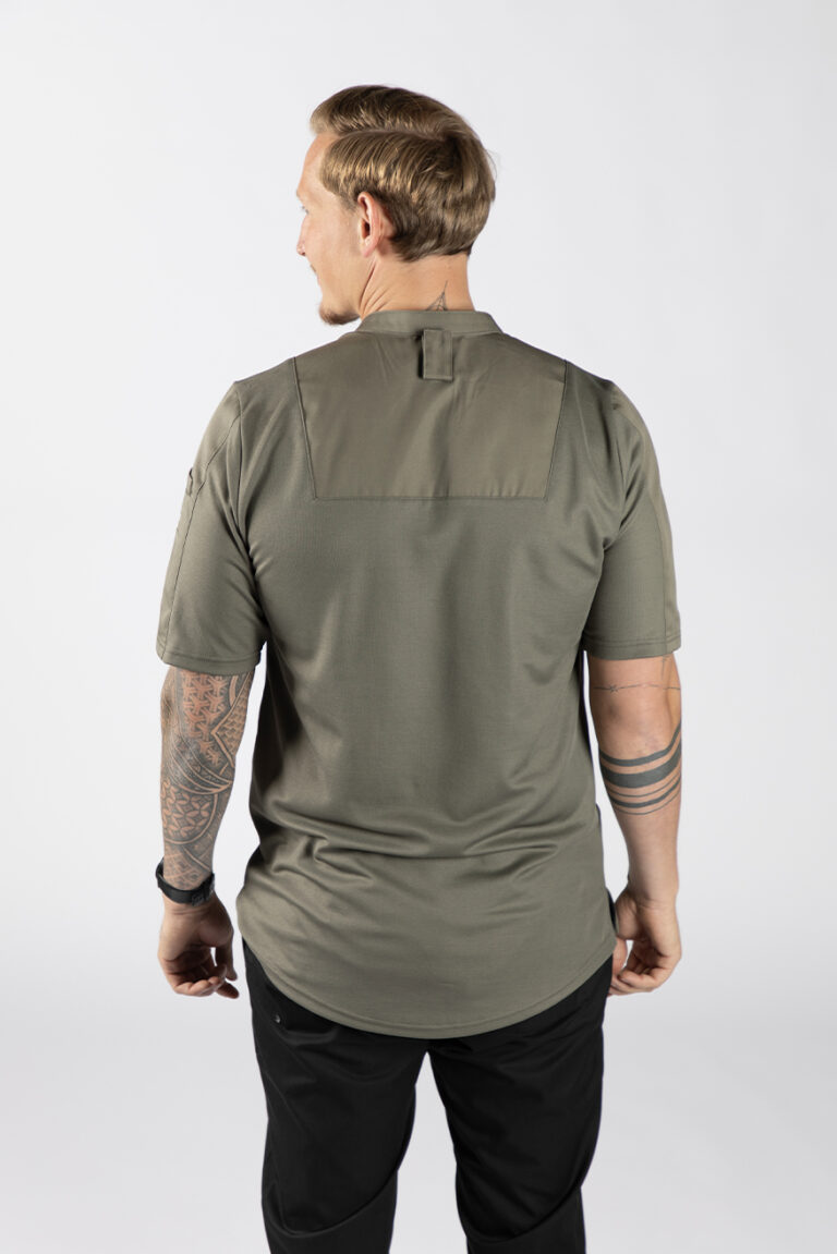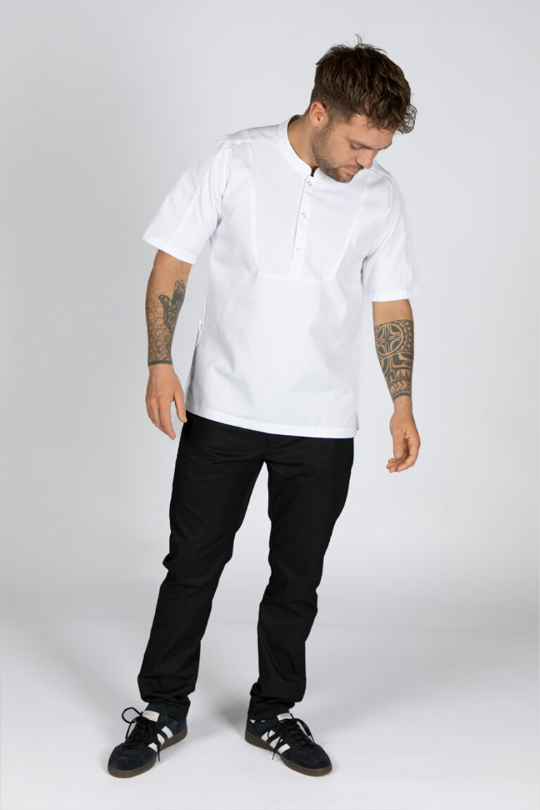 Een van de opvallende kenmerken van de Cheffix koksbuis ICE kortemouw is het moderne en strakke ontwerp. De koksbuis heeft een slanke pasvorm die zorgt voor een professionele uitstraling zonder in te boeten aan bewegingsvrijheid. De subtiele details, zoals de contrasterende stiksels en de stijlvolle knopen, geven de koksbuis een eigentijdse look die perfect past bij de hedendaagse culinaire trends.