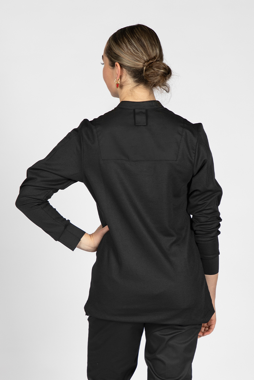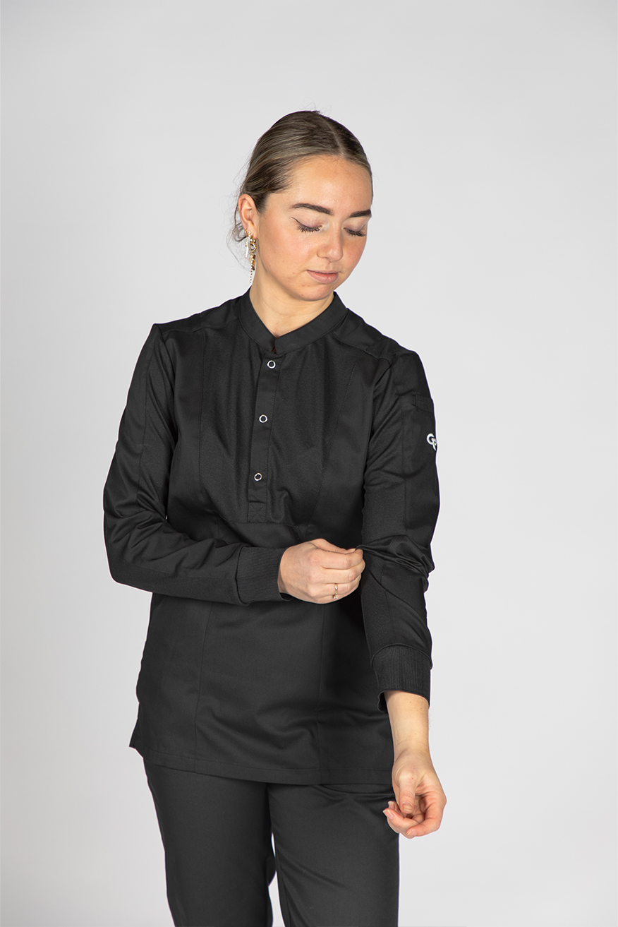 Het ontwerp van de Cheffix koksbuis Liv langemouw is zowel klassiek als modern. De koksbuis heeft een pasvorm die zorgt voor een professionele uitstraling zonder in te boeten aan bewegingsvrijheid. De subtiele details, zoals contrasterende stiksels en stijlvolle knopen, geven de koksbuis een eigentijdse look die perfect past bij de hedendaagse culinaire trends.