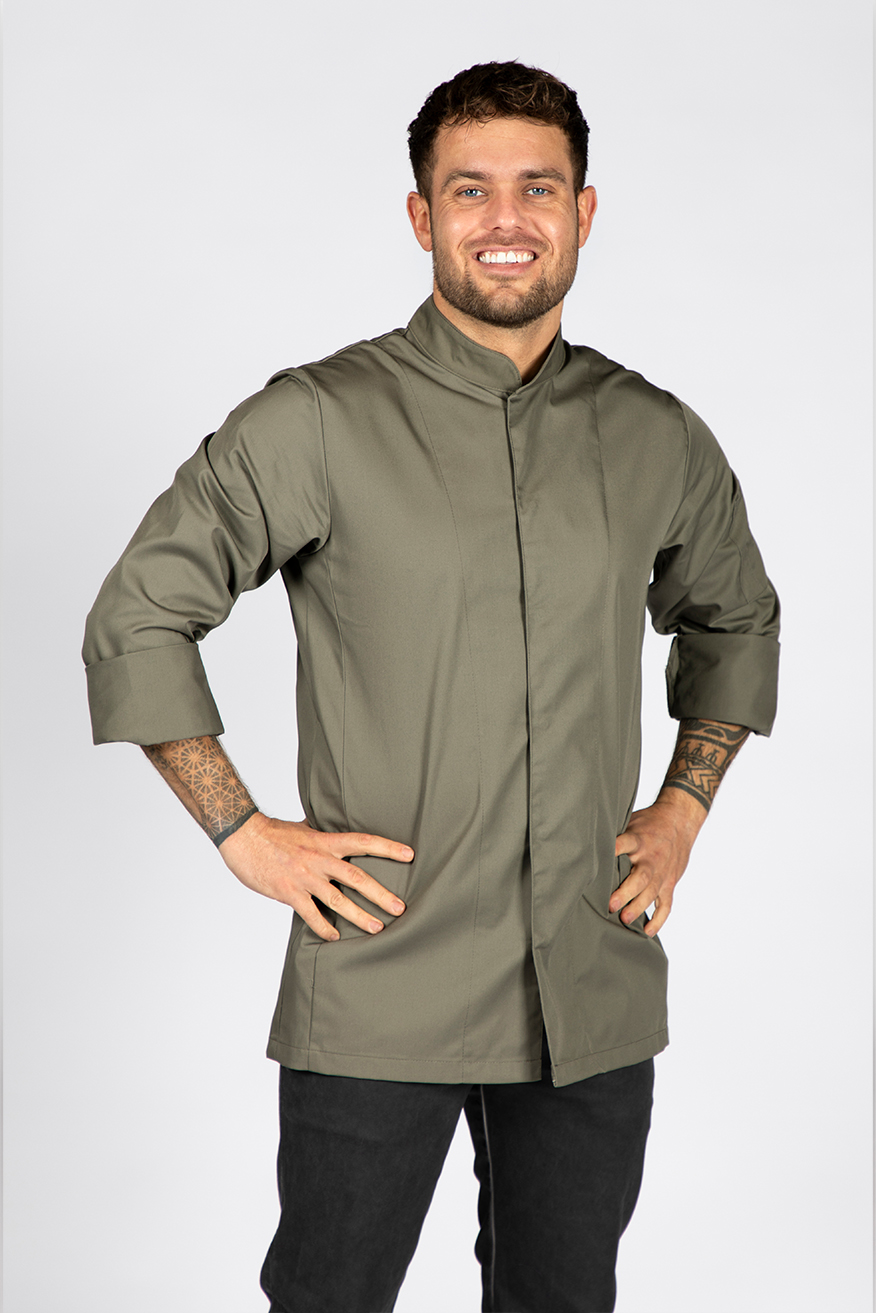 Een van de opvallende kenmerken van de Cheffix koksbuis Verza is het eigentijdse en functionele ontwerp. De koksbuis heeft een pasvorm die een professionele uitstraling geeft zonder in te boeten aan bewegingsvrijheid. De lange mouwen bieden extra bescherming en comfort, vooral tijdens het werken met hete oppervlakken en vloeistoffen. De dubbele rij knopen aan de voorkant zorgt voor een klassieke look, terwijl de verborgen drukknoopsluiting een moderne twist toevoegt. Bovendien zijn de knopen eenvoudig te verwijderen, wat het wassen en strijken van de koksbuis vergemakkelijkt.