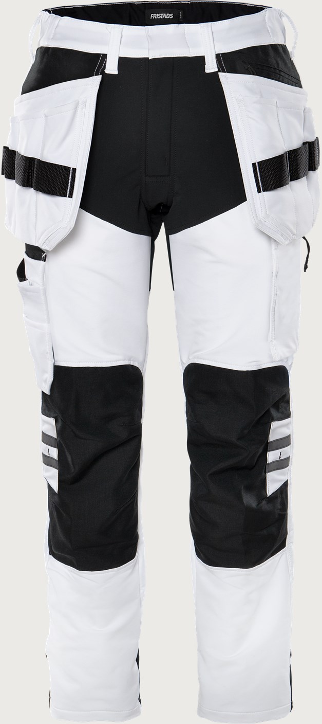 Ontworpen voor schilders / Lichtgewicht 4-way stretchmateriaal / Elastische taille aan zijkanten / Verborgen knoopsluiting aan voorzijde / 2 met CORDURA® verstevigde loshangende zakken, aangepast voor schildersgereedschap met 3 kleinere zakken en gereedschapslussen, een extra zak met rits / D-ring onder loshangende zak / 2 voorzakken / 2 achterzakken, volledig gevoerd met CORDURA®, voor bijv. gereedschap, schuurpapier / Dubbel versterkte kruisnaad / Lus voor doek, met drukknoopsluiting / Ruime beenzak voor duimstok en schildersgereedschap in CORDURA®, CORDURA®-verstevigde gereedschapszak en zak voor utiliteit mes, pennenzak en knoop en lus voor werkmes / Beenzak met drukknoopsluiting en grote stof- en waterbeschermde ritszak voor bijv. telefoon / CORDURA®-versterkte kniezakken met binnenopening / Hoogteverstelling voor kniebeschermers in kniezakken / Reflecterende details op knieën en broekspijpbeenuiteinden / Verstelbare beenlengte met 5 cm zoomtoeslag / CORDURA®-verstevigde broekspijpuiteinden / Goedgekeurd volgens EN 14404 samen met kniebeschermers 124292 / OEKO-TEX® gecertificeerd.